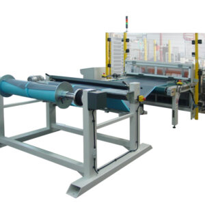 Programmable, automatic and electronic shear, Imesa MOD. 592 is an advanced customizable guillotine solution which can be completed with an on-board roll holder (592 S) a standalone unwinder, a dancing roller for integration in a production line (592 CM), or tables, roller conveyors (592 M) and conveyor belts for material input and output. with adjustable speed.